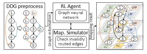 A GNN-RL based approach that improves CGRA mapping by jointly considering placement and routing.